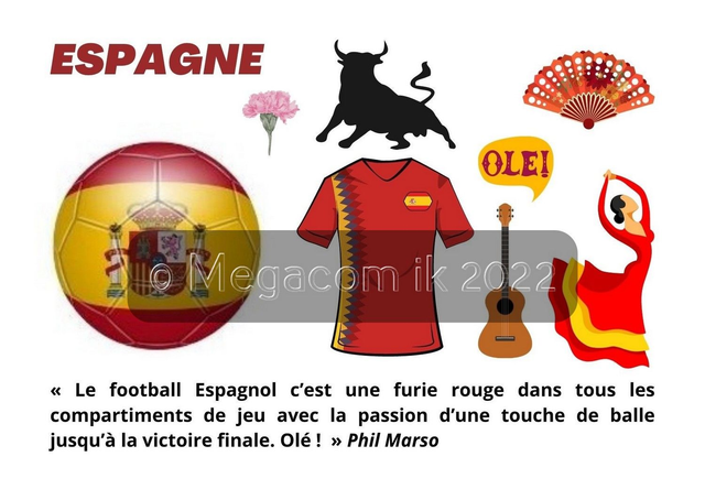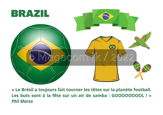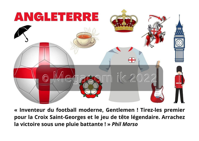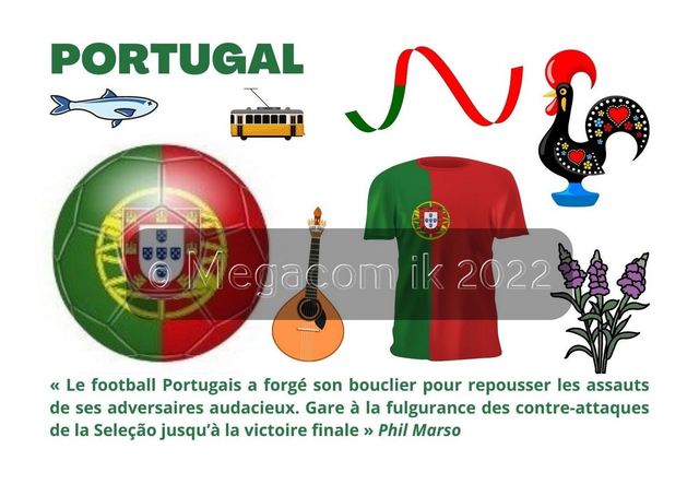La Boutique Megacom-ik spécialiste des drapeaux du monde entier vient de lancer une série de cartes postales sur la Coupe du Monde de football 2022. Chaque carte postale représente une équipe nationale avec une citation insolite de l'écrivain Phil Marso.